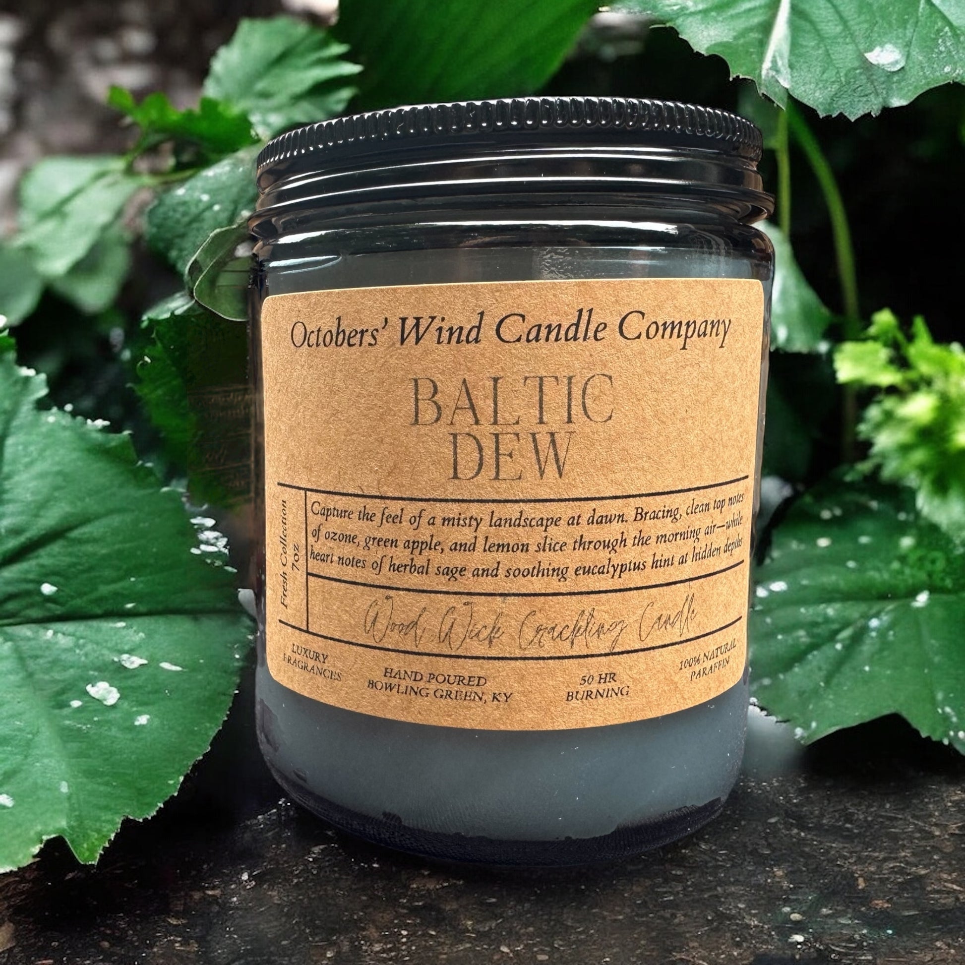 Candle features paraffin wax and wooden crackling wick